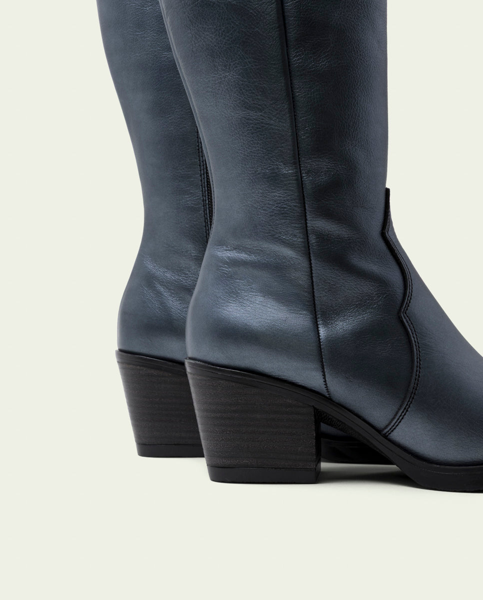 BOTTES COWBOY EN CUIR MÉTALLISÉ PLOMB FABILA