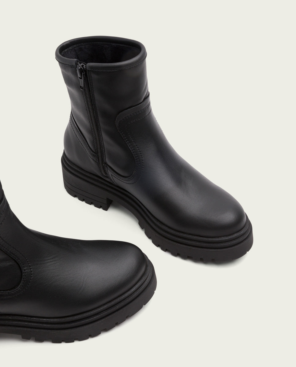 BOTTINES EN CUIR NOIR AVEC FERMETURE ÉCLAIR CLARA