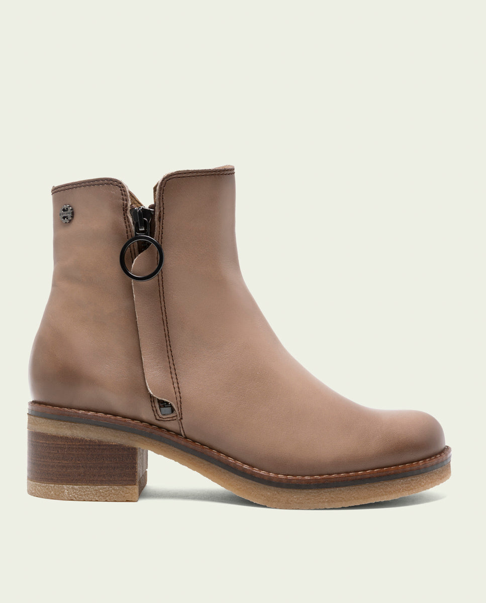 BOTTINES EN CUIR TAUPE AVEC ÉCLAIR DELIA