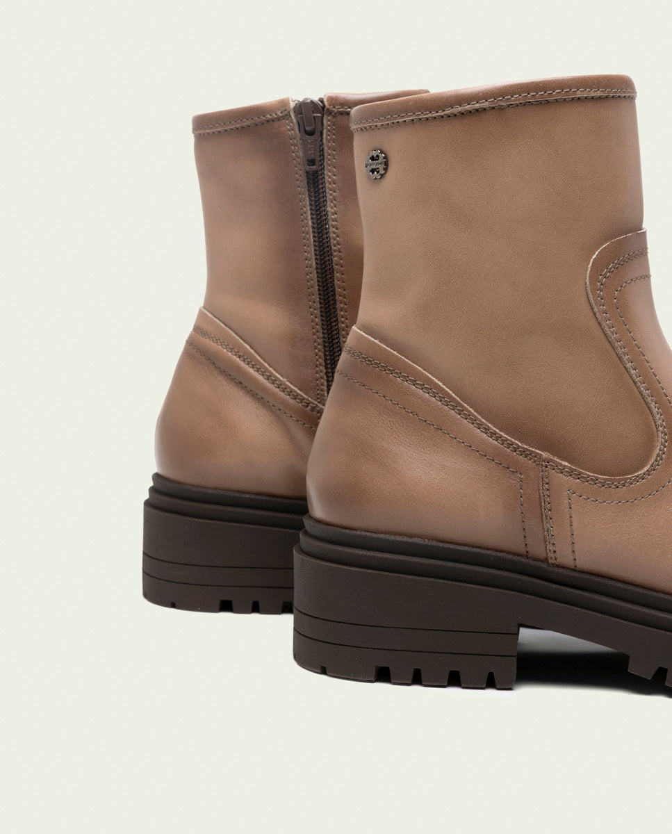 BOTTINES EN CUIR TAUPE AVEC FERMETURE ÉCLAIR CLARA