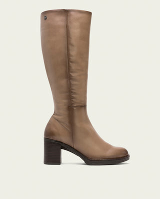 BOTTES EN CUIR À TALONS TAUPE RITA