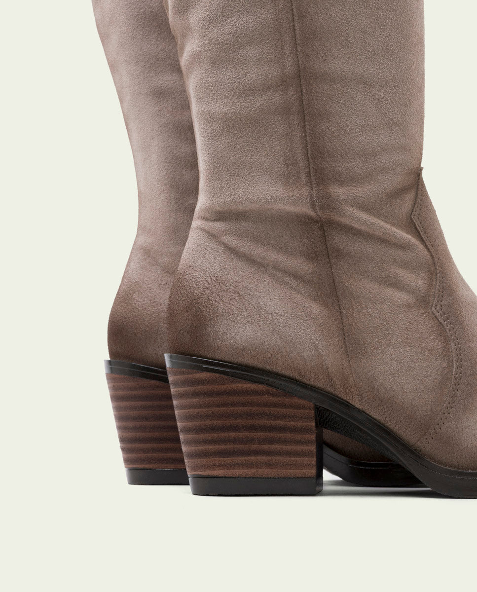 BOTTES COWBOY EN CUIR TAUPE AVEC FERMETURE ÉCLAIR HELGA
