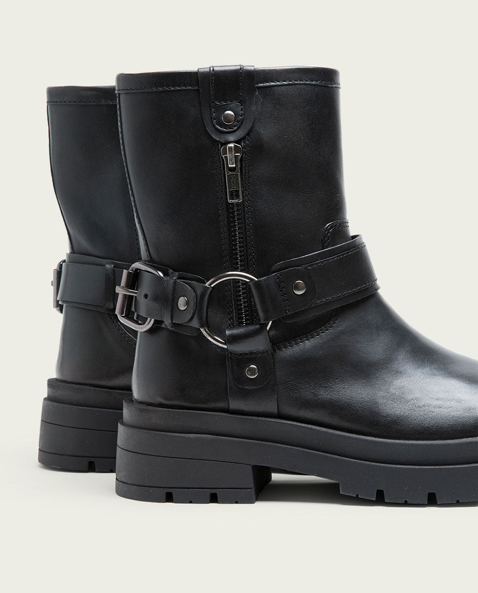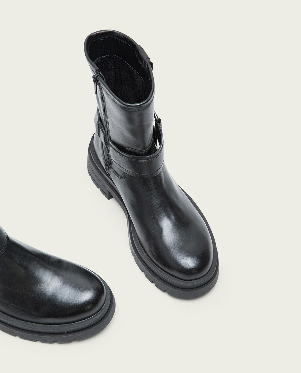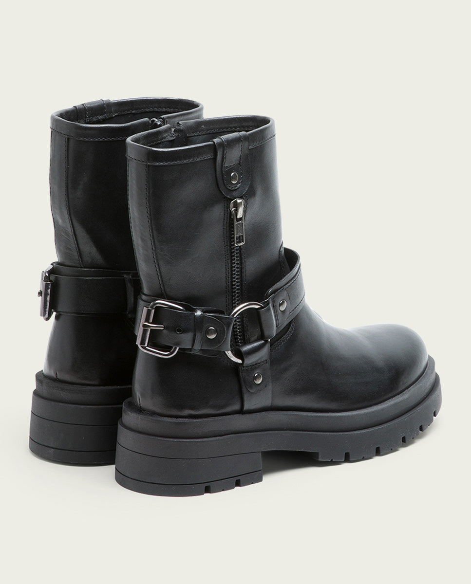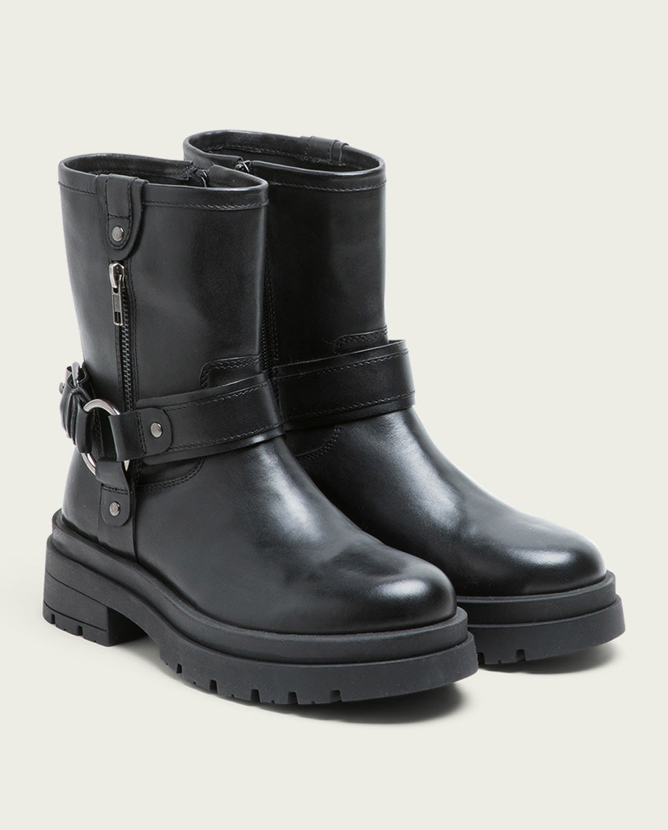 BOTTINES TRACK EN CUIR NOIR AVEC FERMETURE ÉCLAIR NASYA