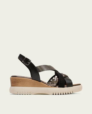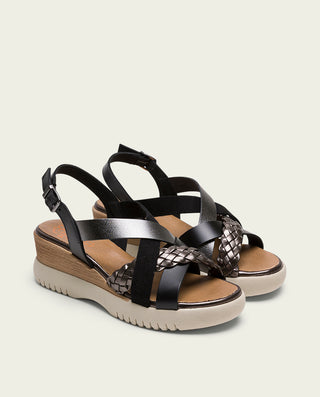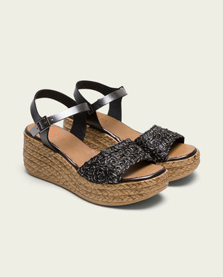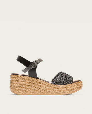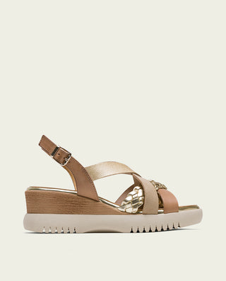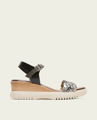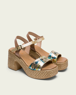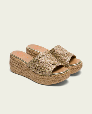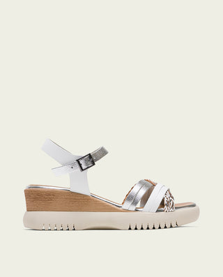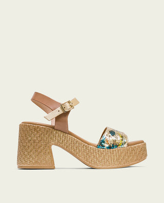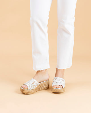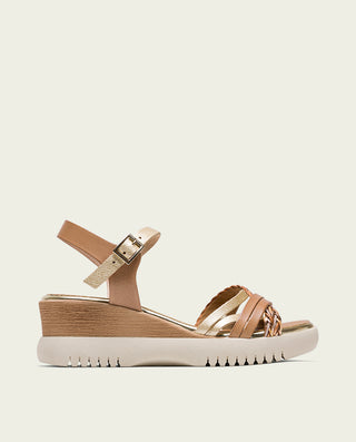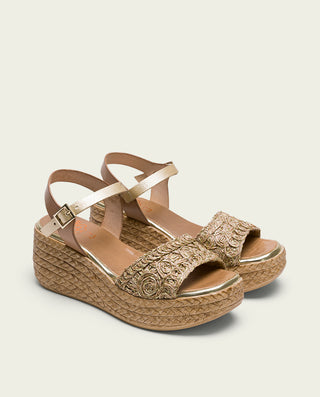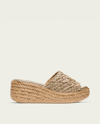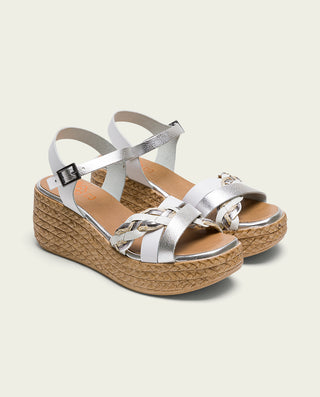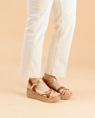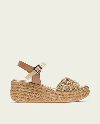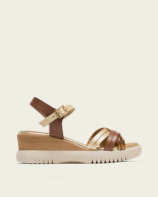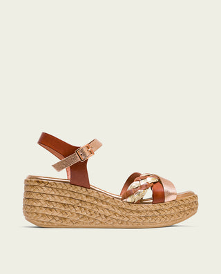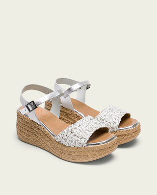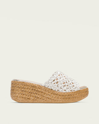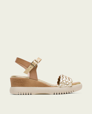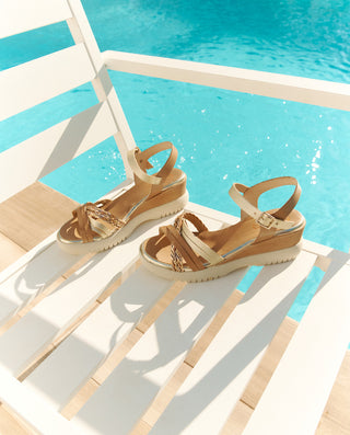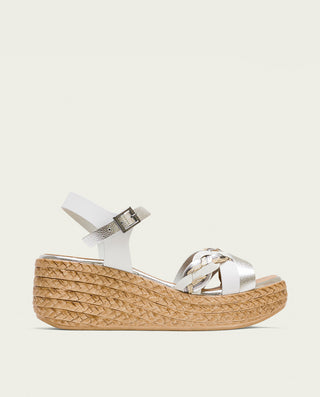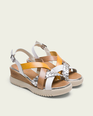 SANDALE COMPENSÉE EN CUIR BLANC MOUTARD TRESSÉ BÁRBARA