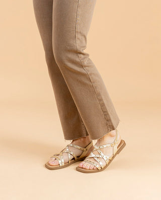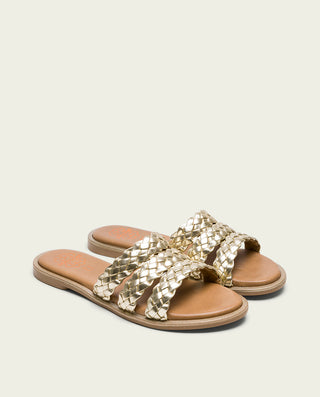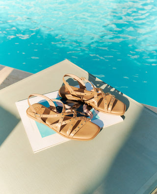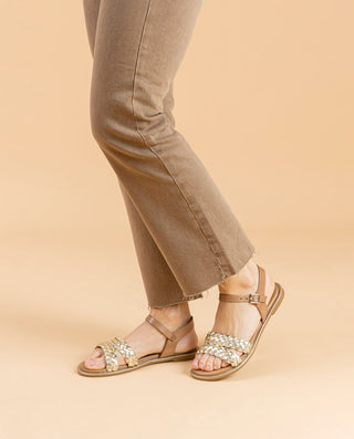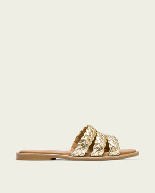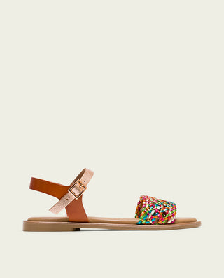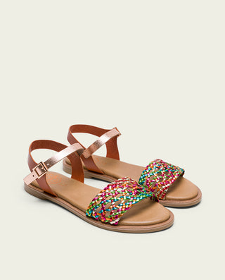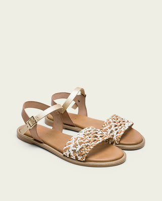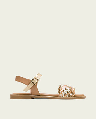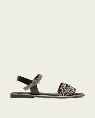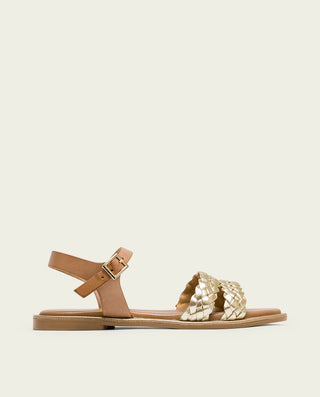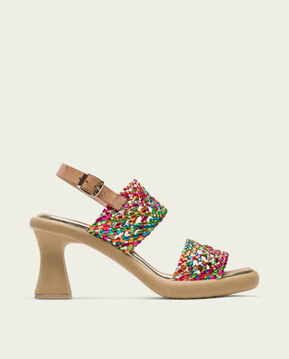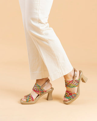SANDALE À TALON EN CUIR TRESSÉ TAUPE AUX COULEURS ALICIA