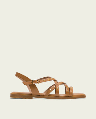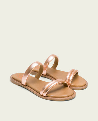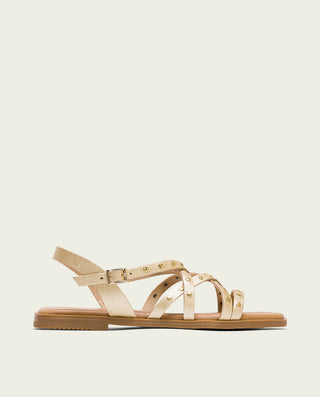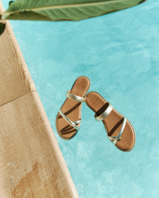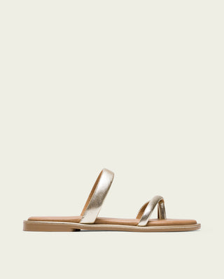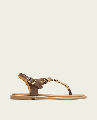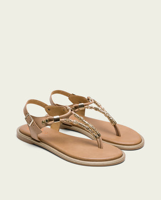 SANDALE THONG PLATE EN CUIR AVEC PERLES TAUPE ESTELA