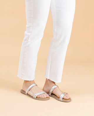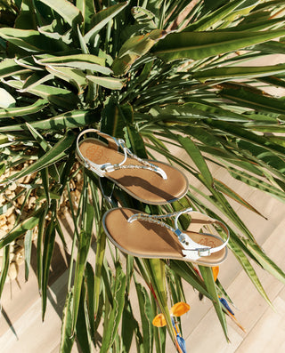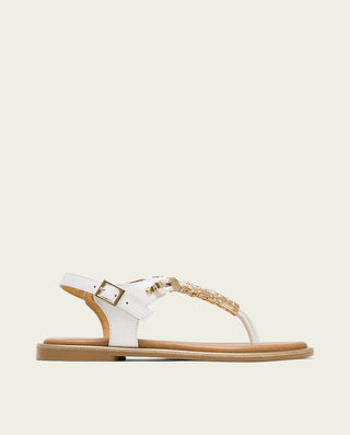 SANDALE THONG PLATE EN CUIR AVEC PERLES BLANCHE ESTELA