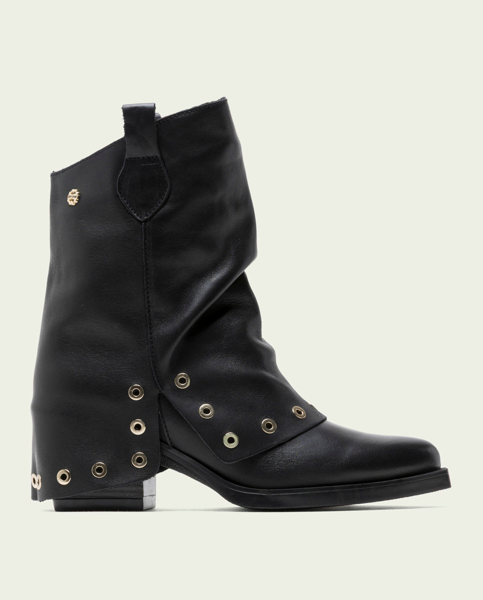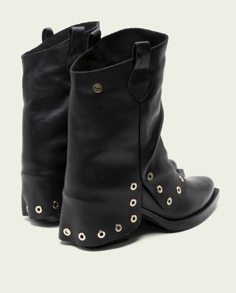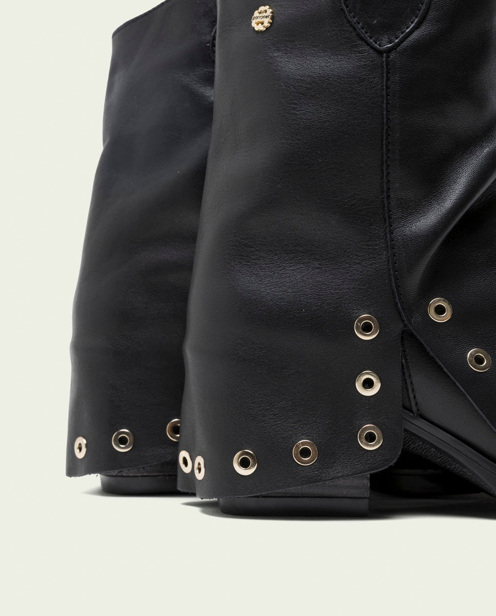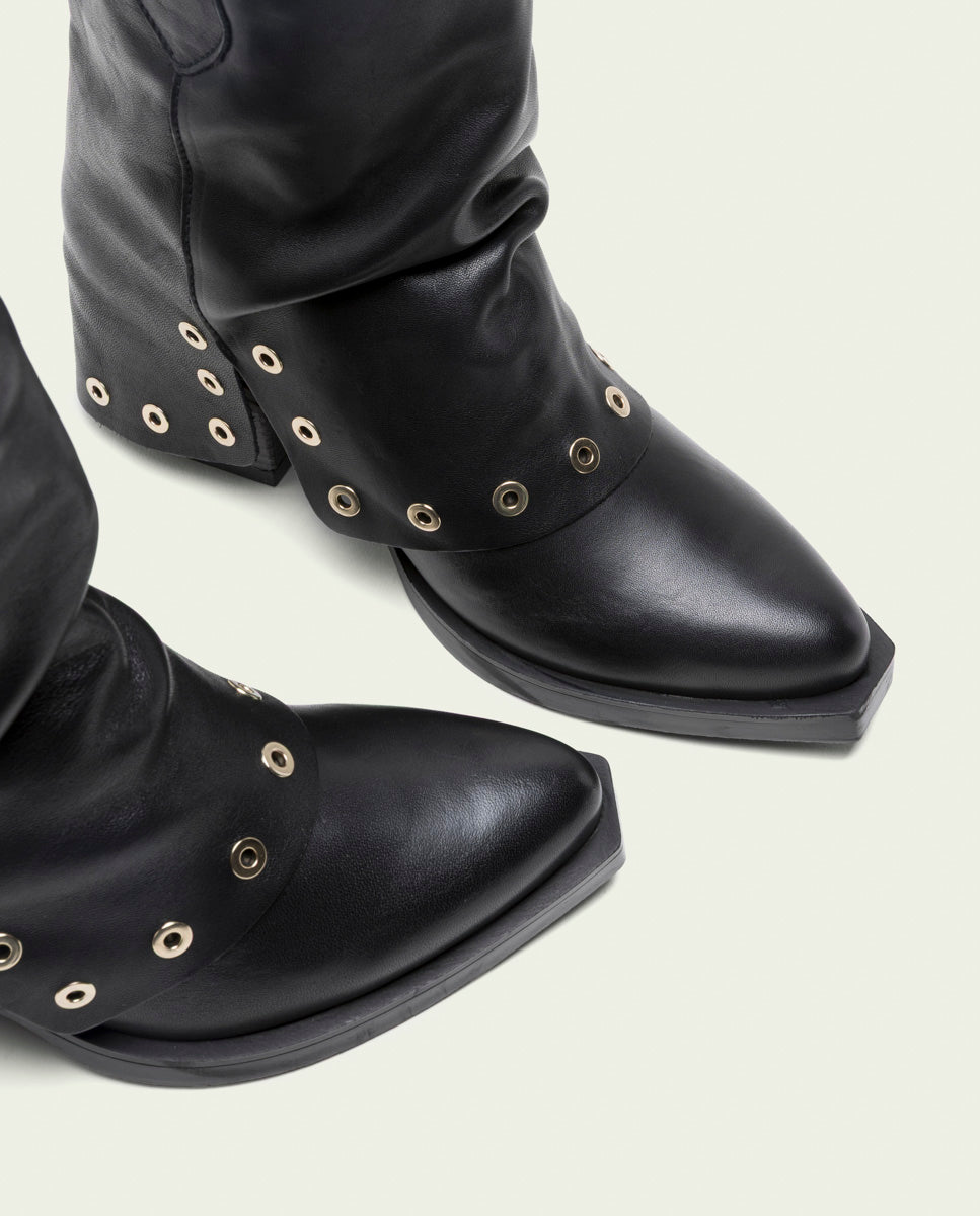 BOTTES À DOUBLE FACE EN CUIR NOIR AVEC CLOUS FLAVIA