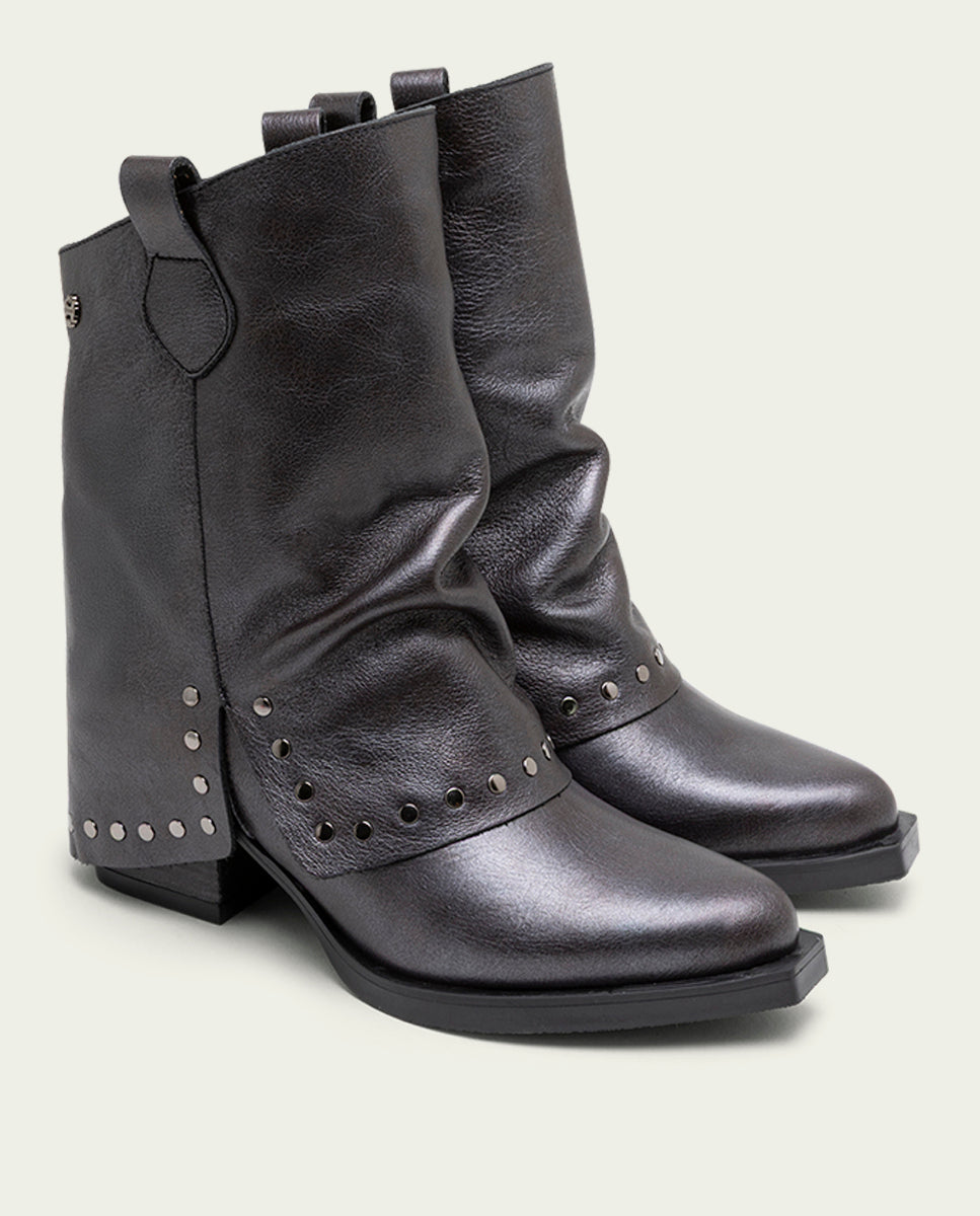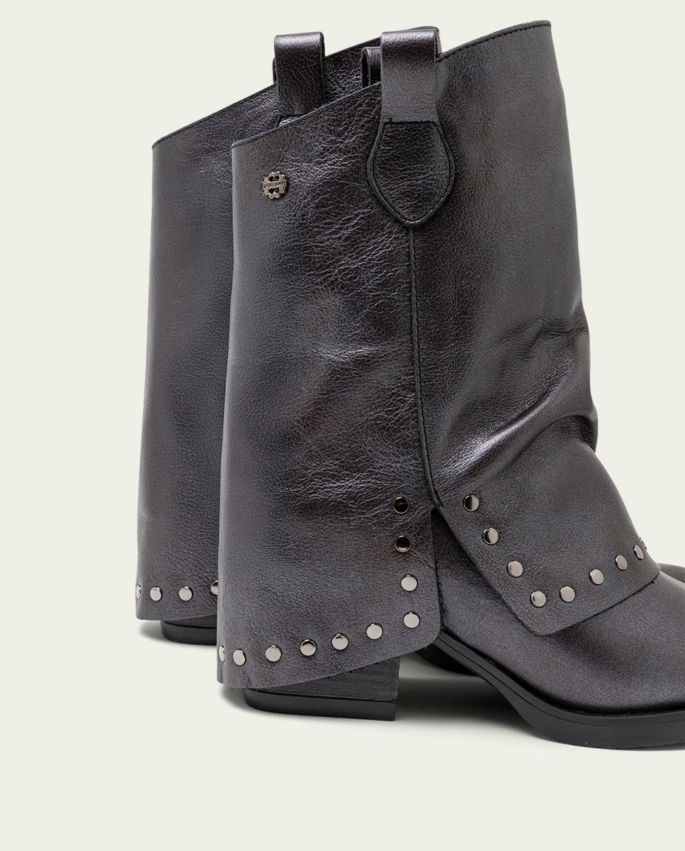 BOTTES DOUBLE FACE EN CUIR MOKA MÉTALLISÉ AVEC CLOUS FAITH