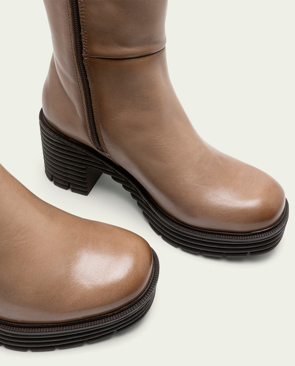 BOTTES EN CUIR À FERMETURE ÉCLAIR TAUPE MILEY